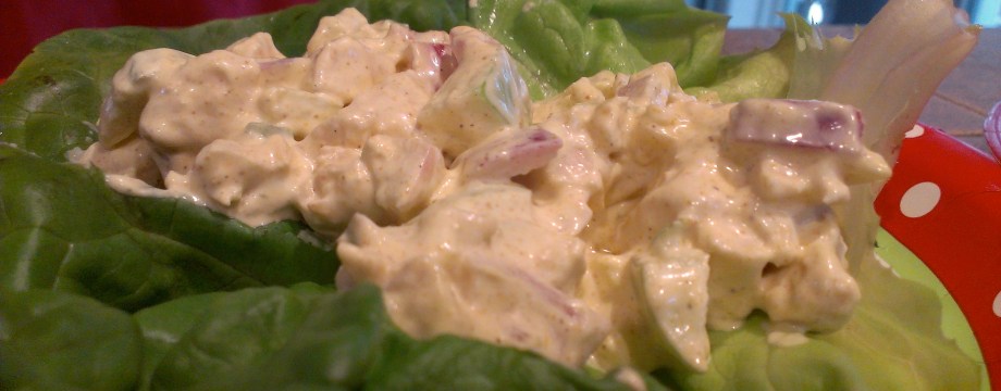 Today is a busy day for us. We’ve got an NFL playoff game to watch (go, Broncos!) and a birthday dinner for my dad this evening. Our best option for a curried chicken dish was lunch; I found a recipe for a curried chicken salad lettuce wrap featuring diced chicken, apples, red onion, garlic, mayo, sour cream, and curry powder. It was surprisingly delicious…so much so that we’re declaring this recipe a keeper! Tara isn’t even a fan of chicken salad in general, but loved this one. I think personally it’s been my favorite food challenge so far, and I love that we are expanding our food horizons with recipes we’d probably never even think of trying otherwise!