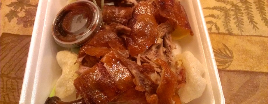 Not in the mood to gut our own bird and hang it from a meat hook (even though there’s a wetlands behind the condo complex and we surely could have pulled this off), we instead drove to a Chinese restaurant in Portland, where we had phoned in an order of Peking Duck to go.