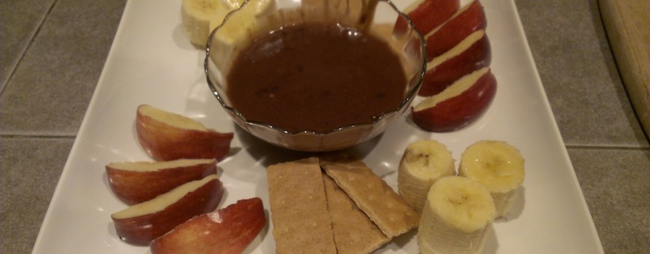 When we were discussing what to dip in our chocolate fondue, I suggested apples. Tara thought that was an odd choice, but it turns out apples and other fruit (strawberries and bananas) are popular accompaniments, as are marshmallows, pretzels, and graham crackers.