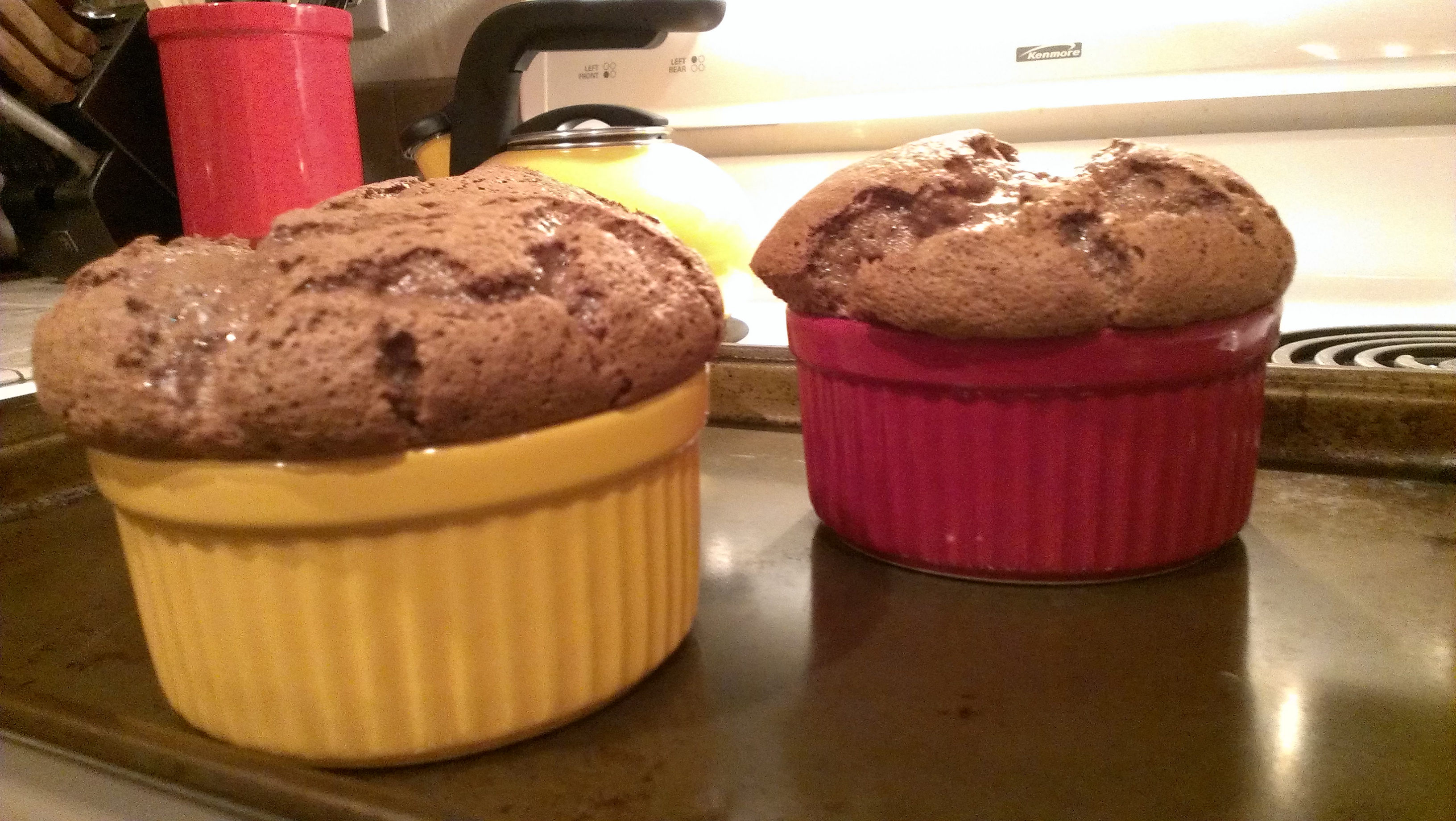 We rose to the occasion today in order to celebrate National Chocolate Souffle Day: Tara and I decided to have a chocolate souffle bake-off. Keep in mind, neither of us had ever made a souffle of any kind. We’ve watched enough cooking shows over the years to know that souffles have tripped up many a good chef before, so I’ll admit it: I was apprehensive going into the challenge. How’d we fare? Read on!