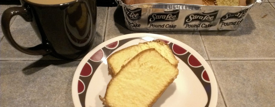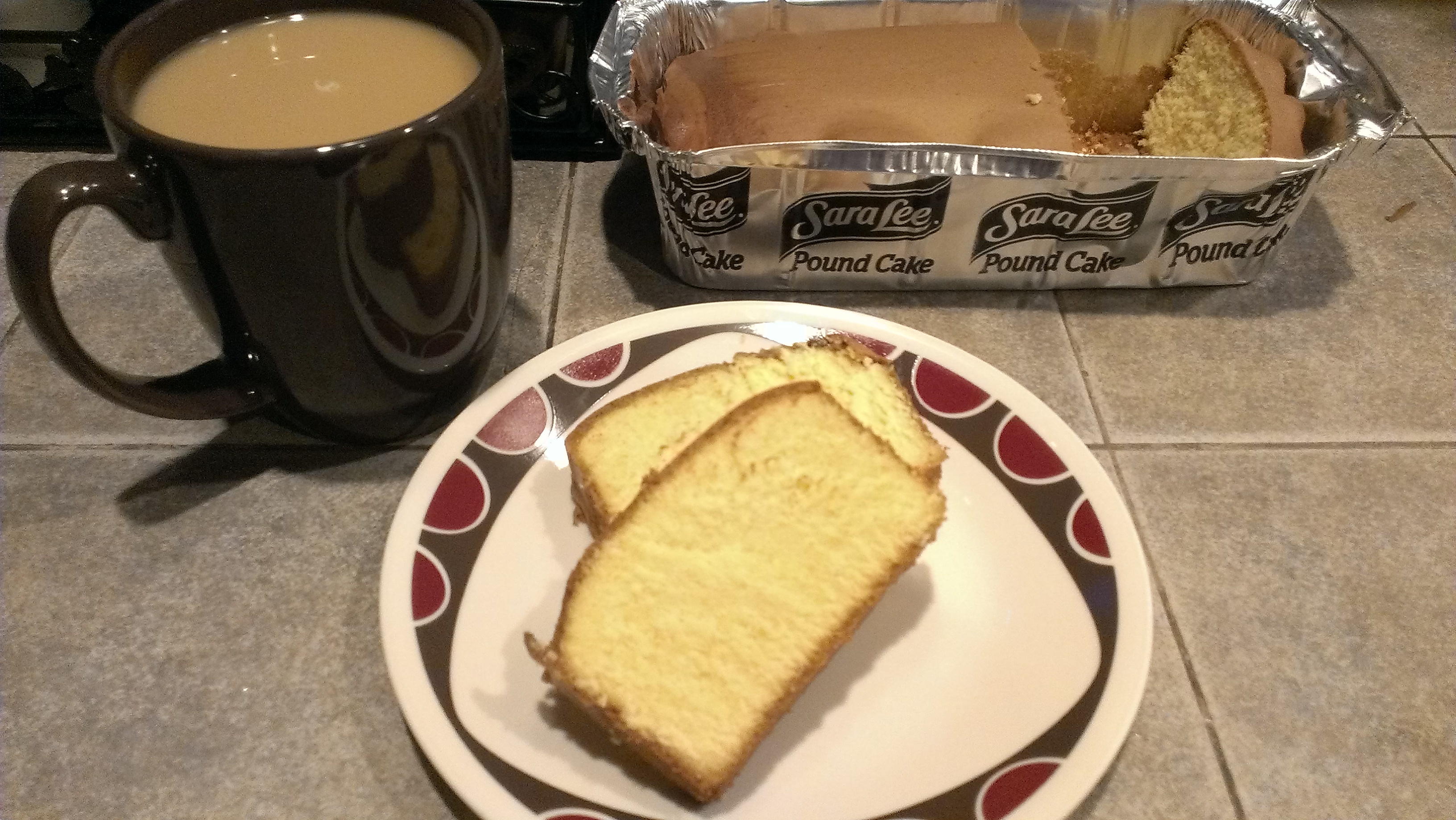 Tara and I indulged in a slice of pound cake – washed down with coffee – for breakfast this morning. It may not have snapped, crackled or popped, but it was still a pretty tasty way to start the day.