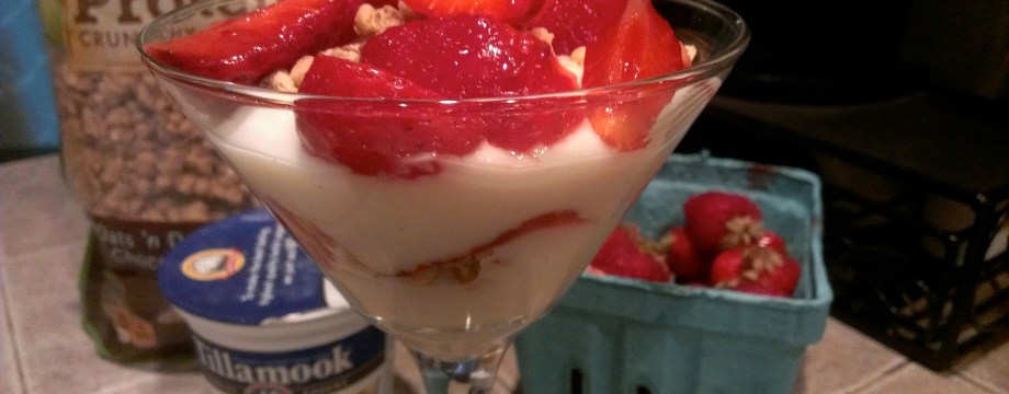 I decided to mix things up and go healthier with these parfaits. I layered Tillamook vanilla yogurt, fresh Hood strawberries from Oregon, and granola for a tasty low-cal, low-fat treat. It was very good. But also would have been more apropos for breakfast. Hmm…