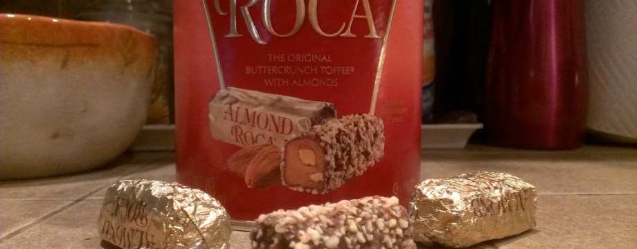 I suppose we could have slaved over a hot stove making our own almond buttercrunch, but why bother when every it’s easy enough to find in the grocery store? (Although, it did take us three tries). I’m very familiar with Almond Roca because it was my former father-in-law’s favorite candy. Odd that the candy outlasted the marriage, but hey – it’s good stuff!