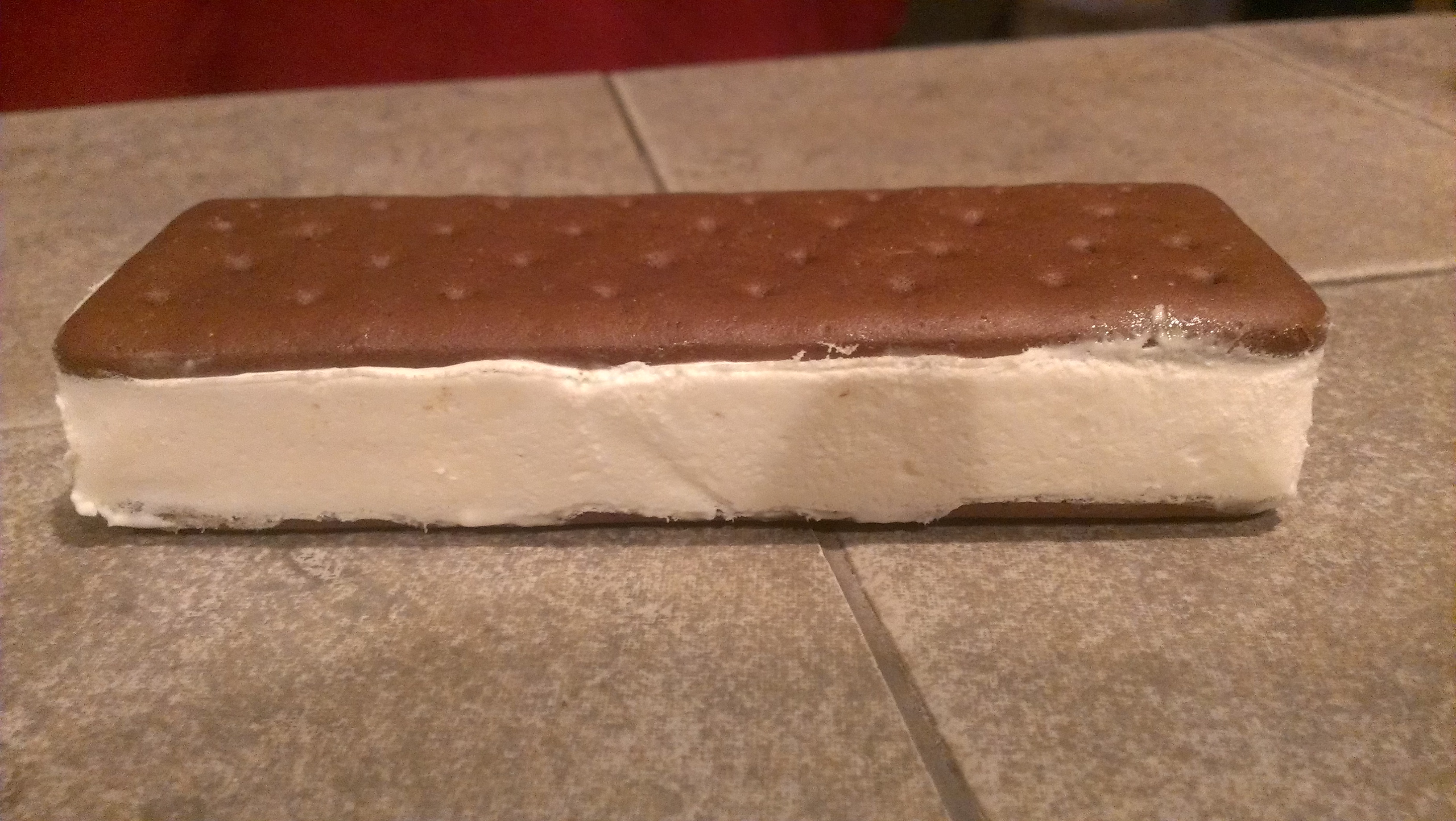 Ice cream sandwiches were first created when advances in freezer technology enabled ice cream to last longer than thirty minutes without melting into a sweet, sticky puddle – sometime in the 18th century. Victorian-era chefs began layering ice cream in between slices of cake and freezing their confection. Ice cream sandwiches and other “novelties” became popular in the end of the 19th and early 20th centuries, when they were a cheap way to beat the heat. According to the Encyclopedia of American Food & Drink, “Ice cream sandwich (slabs of ice cream sandwiched between cakelike cookies)…began appearing in the late 1890s on New York street vendors’ carts. In San Francisco the It’s It ice-cream bar was a similar item made with oatmeal cookie layers.” In 1926, a patent was issued for the Anderson ice cream making machine, no doubt saving countless hours that would otherwise be spent assembling the desserts by hand. Blue Earth, Minnesota claims to be “the birthplace of the ice cream sandwich,” but provides no facts to back up their claim. Sounds like a desperate grab for attention to me.