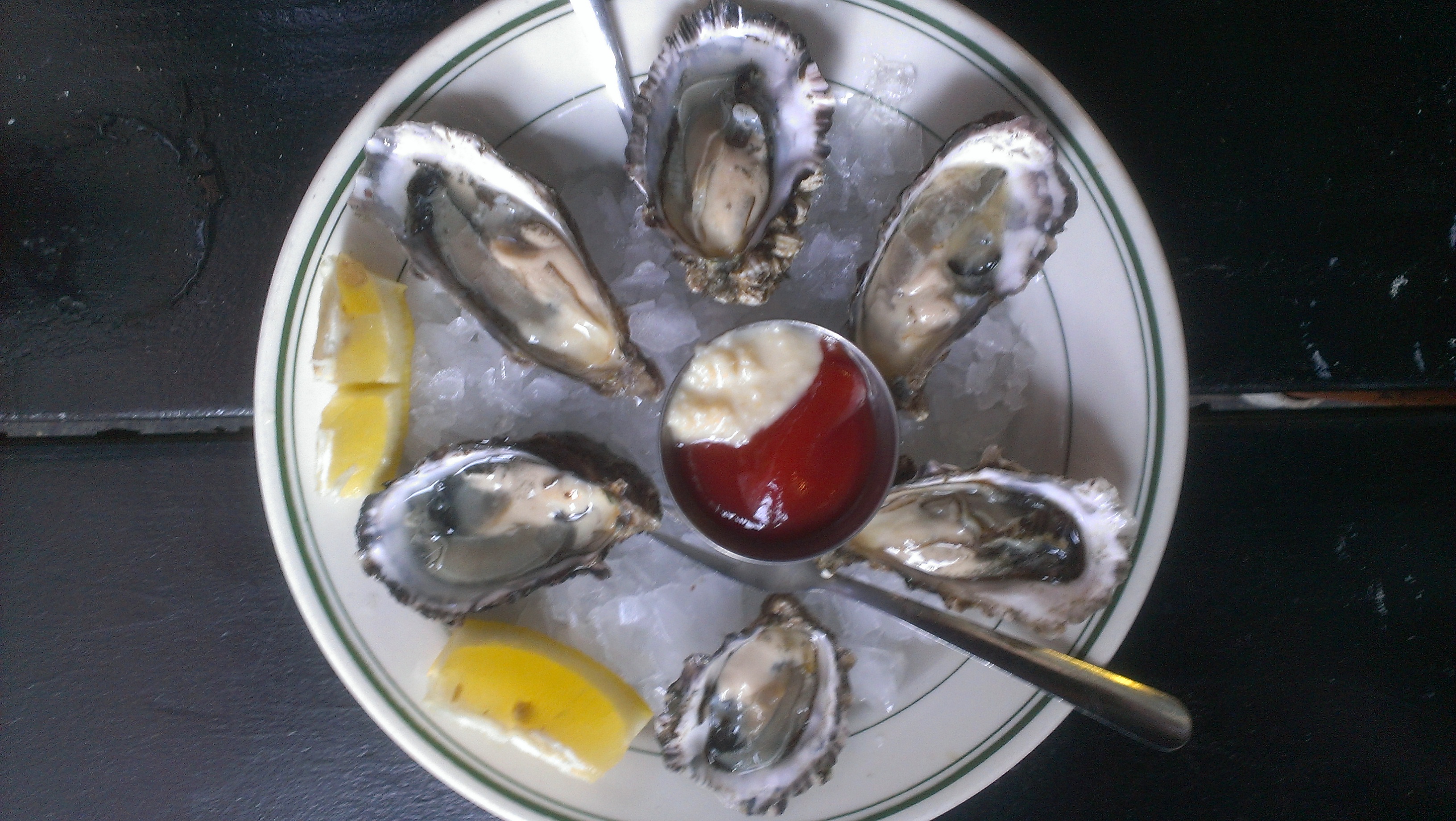 Up until a few months ago, Tara and I both thought we hated oysters. Then one day, on a whim, we ordered a couple as an appetizer while at a trendy bar in Portland, and were blown away. We have since had them several times, and now count them as a delicious delicacy, savoring their briny flavor whenever possible. So we were quite happy when this holiday rolled around! The fact that it’s also National Waffle Day barely registered. There was only one food item we were interested in celebrating, and that was the oyster, baby.