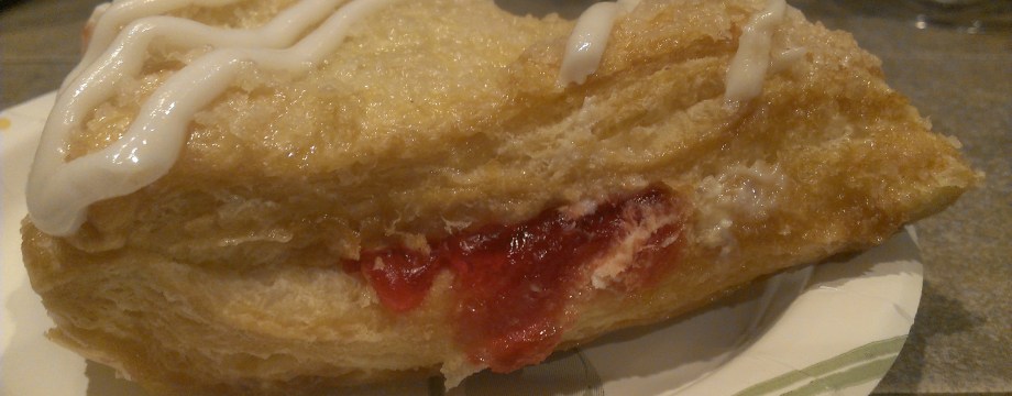Cutting right to the chase, we grabbed some cherry turnovers from the grocery store. You know how they say Wheaties is “the breakfast of champions”? Wrong. It’s cherry turnovers and coffee.