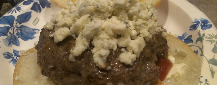 I’m a big fan of blue cheese, so I for one was looking forward to this holiday. Tara, on the other hand? Not so much. So I find it highly suspicious that she got sick today and had to leave work early with a bad cold. Hmm. Blue cheese dressing would have been the obvious and easy choice, but I consider myself a bit of a Renaissance man. Which mean, a hamburger topped with blue cheese crumbles instead. Delicious! And to her credit, my “sick” wife did take her requisite bite of the burger. (OK, I’ll take away the quotation marks. She really is sick, poor thing. I’m just glad this was a relatively easy challenge and did not require a trip to a restaurant or a lot of serious baking).