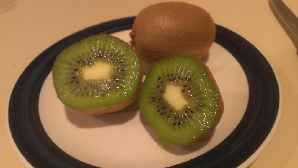 Whatever you call it, kiwis are delicious! The easiest way to eat them, I learned long ago, is to slice them in half, and then scoop out the sweet flesh with a spoon. Which is exactly what we did this morning.